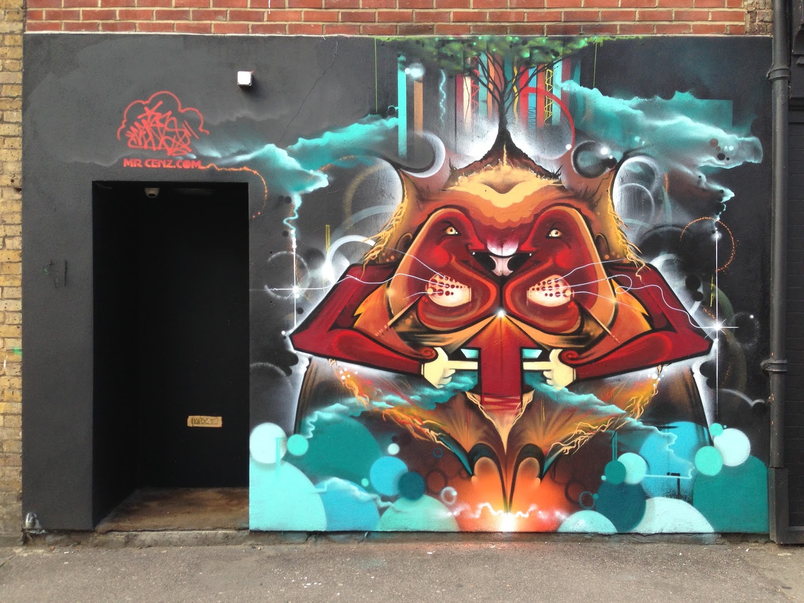As his owls are so popular, the fact that Dscreet is a phenomenal graffiti writer is perhaps a little bit overlooked. The owls and the graffiti both featured in this combative collab with Conor Harrington, we loved the blood spurting everywhere and note also the musical reference in the tribute to Adam "MCA" Yauch of Beastie Boys.