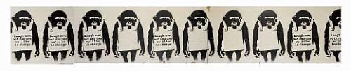 Christ With Shopping Bags (13/82) topped the prices for other signed prints at £17,000 whilst signed HMV (19/150) and Golf Sale (27/750) both realised £11,000 and signed I Fought The Law brought in £10,000. The last three make the £11,000 paid for an un-signed Bomb Middle England (288/500) look like in-explicable lunacy. The only rat at the show other than me, an un-signed Gansta Rat (94/350) went for £6,500.